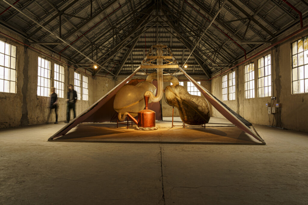 A 13ª Bienal do Mercosul teve em sua proposta uma equação de três conceitos que buscam evidenciar o enigma do indizível. Trauma, sonho e fuga são fenômenos daquilo que não se pode ser dito. Diante da latência de um espírito do tempo que se manifesta no inconsciente, nos deparamos às perguntas cujas respostas não têm uma forma verbal. Esse lugar da poética de um nó na garganta, de um grito não expresso, de um segredo guardado é o que buscamos mapear.